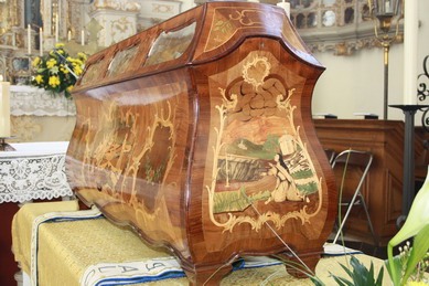 Dieser wird nun bis zur abendlichen Andacht ausgestellt, um danach wieder seinen ursprünglichen  Platz am Haupteingang der Kirche einzunehmen.